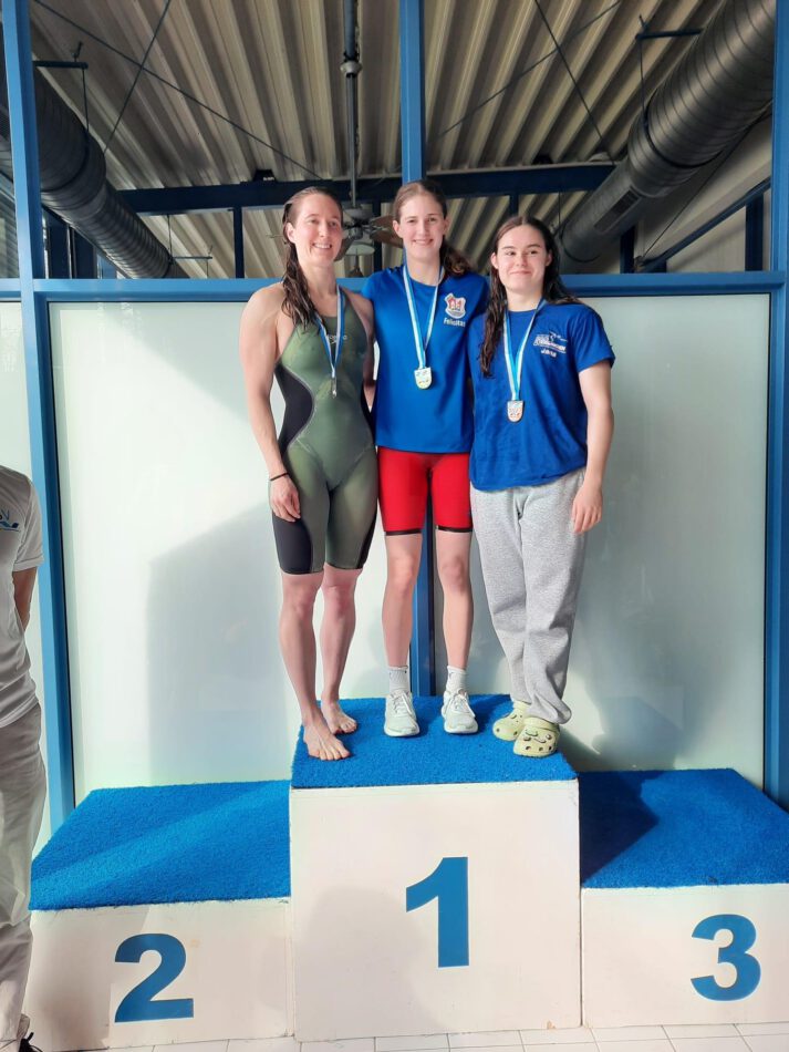 Felicitas Holderer hatte dabei ein besonders gutes Wochenende erwischt: Mit ihrer Zeit von 00:27,48 ging sie als Schnellste aus den Vorläufen über 50m Freistil heraus. Im Finale am Nachmittag konnte Feli sich nochmals auf persönliche Bestzeit von 00:27,19 steigern und mit dem Titel „Bayerische Meisterin der Offenen Wertung“ krönen.